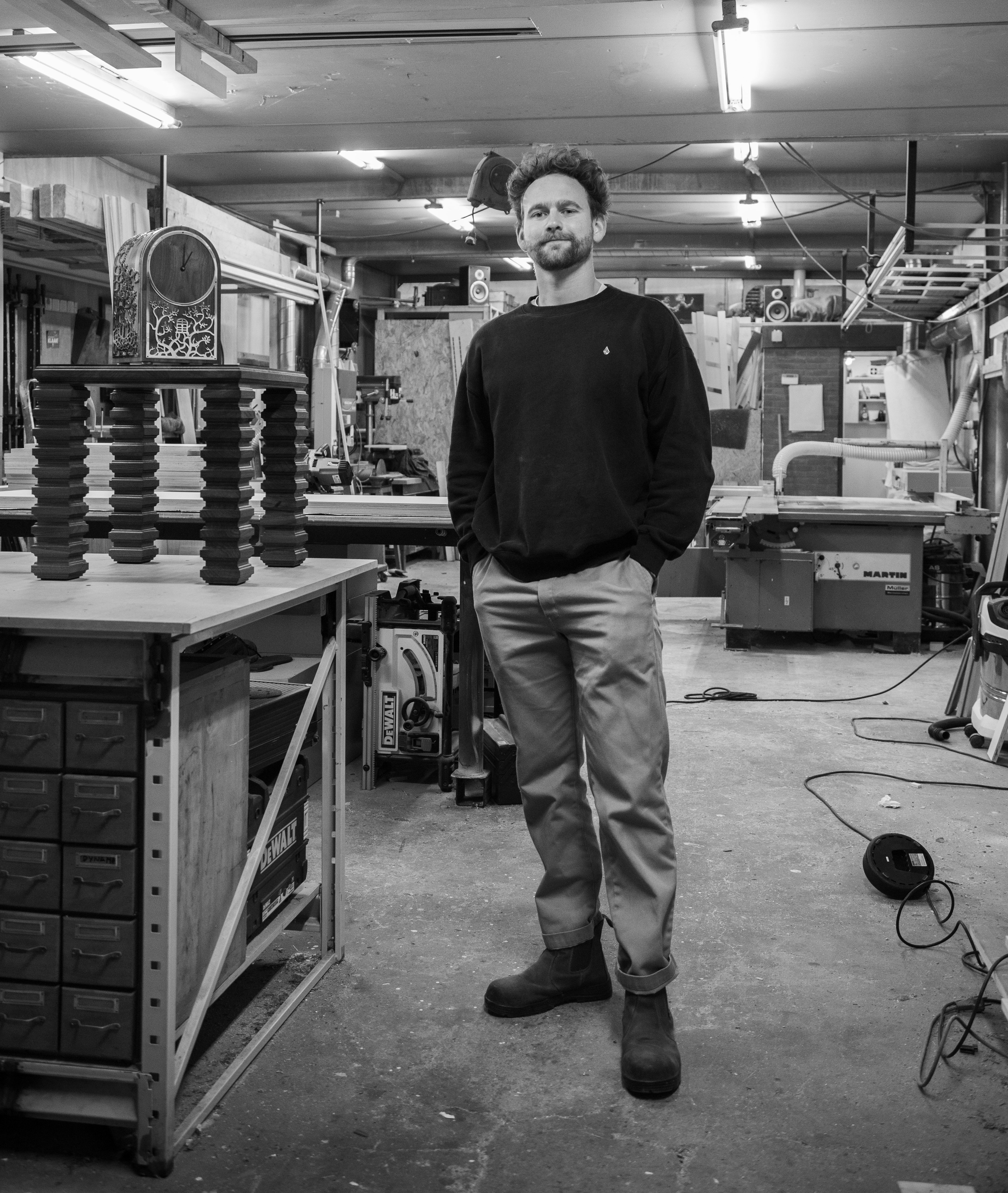 He creates functional objects inspired by decorative antique pieces of furniture with great appreciation for craftsmanship and storytelling. His works are a combination of inspirations from the past put into a contemporary context by using illustrations and different woodworking techniques.
